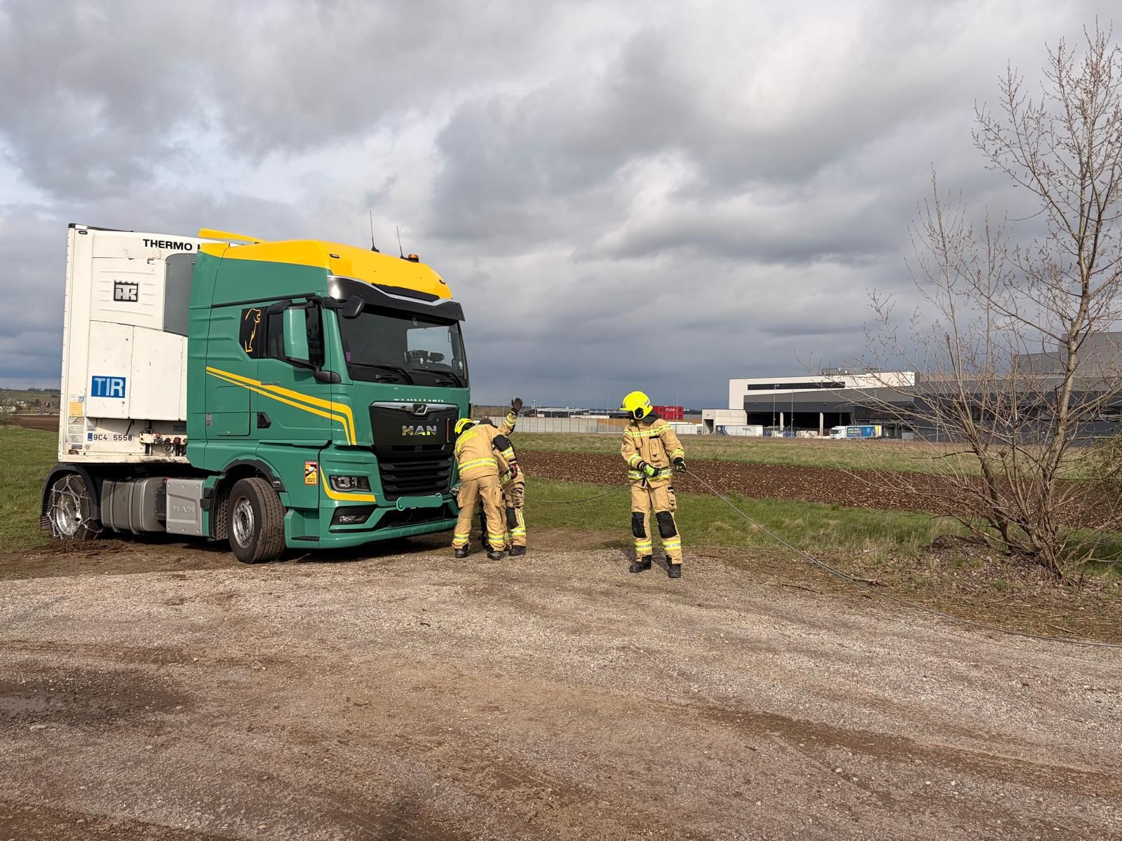 In kürzester Zeit rückten KDOA 1, Tank 1 und Tank 2 zum Einsatzort aus. Beim Eintreffen an der Einsatzstelle wurde eine Sattelzugmaschine vorgefunden, die sich beim Wenden festgefahren hatte. Mittels Seilwinde von Tank 1 konnte das Fahrzeug rasch und sicher wieder auf die Straße gezogen werden. Anschließend konnte der Lenker seine Fahrt eigenständig fortsetzen.