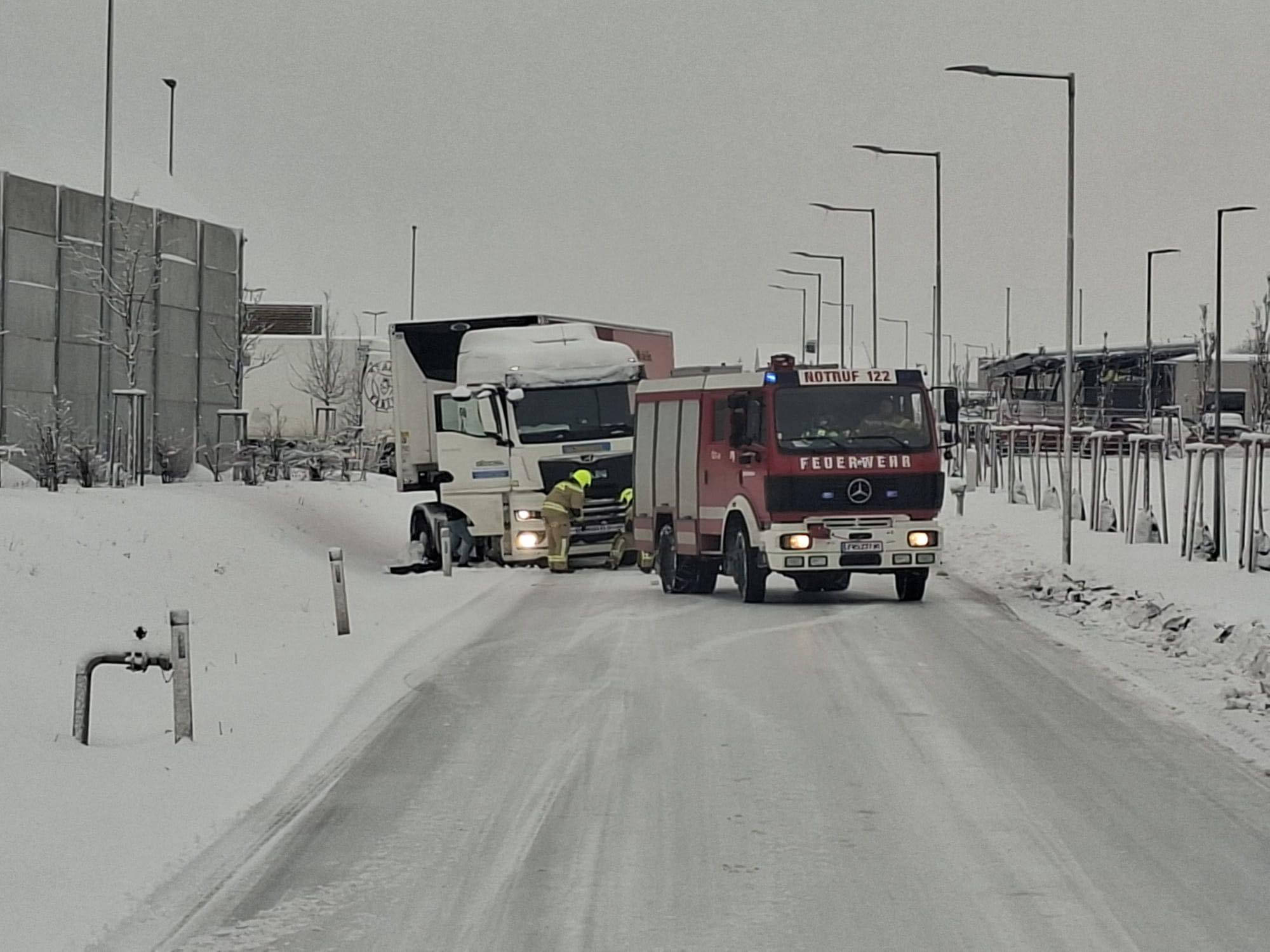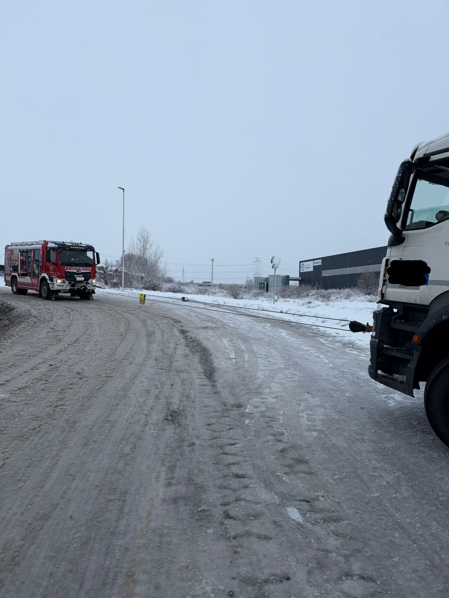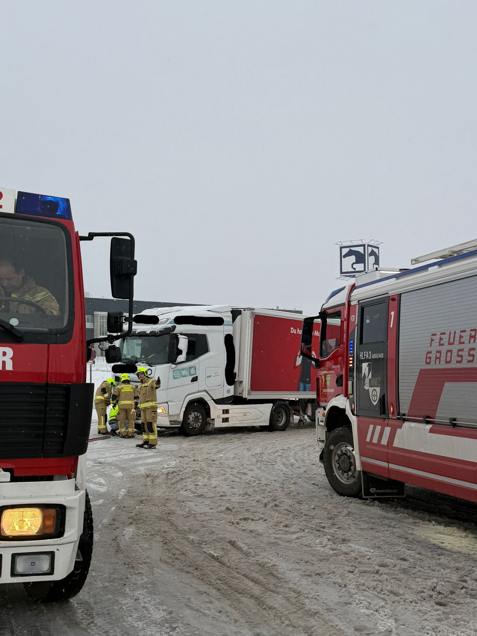 Am 20.02.2026 um 07:02 Uhr wurden wir zu einer LKW-Bergung ins Industriegebiet alarmiert. In kürzester Zeit rückten KDOA 1, Tank 1 und Tank 2 zum Einsatzort aus. Bereits auf der Anfahrt stellten wir fest, dass aufgrund der winterlichen Fahrbahnverhältnisse mehrere LKW im Industriegebiet hängen geblieben waren. Beim ursprünglich alarmierten Einsatz – „LKW im Graben“ – wurde das Fahrzeug mittels Seilwinde des HLF geborgen. Durch das sogenannte Einscheren (Verdoppeln der Zugkraft) konnte die notwendige Zugleistung erreicht werden. Eine besondere Herausforderung stellte dabei ein überfahrenes Verkehrszeichen dar, das sich durch die Konstruktion des LKWs geschoben hatte – ähnlich einem Widerhaken. Dieses musste mithilfe der Bergeschere fachgerecht entfernt werden. Die weiteren hängen gebliebenen LKW konnten mit Tank 2 und Abschleppstange zurück auf die Fahrbahn gezogen werden und ihre Fahrt anschließend selbstständig fortsetzen. Wir bedanken uns bei der Polizei Wolkersdorf für die gewohnt professionelle und kameradschaftliche Zusammenarbeit. Um 09:10 Uhr konnten wir wieder ins Feuerwehrhaus einrücken.
