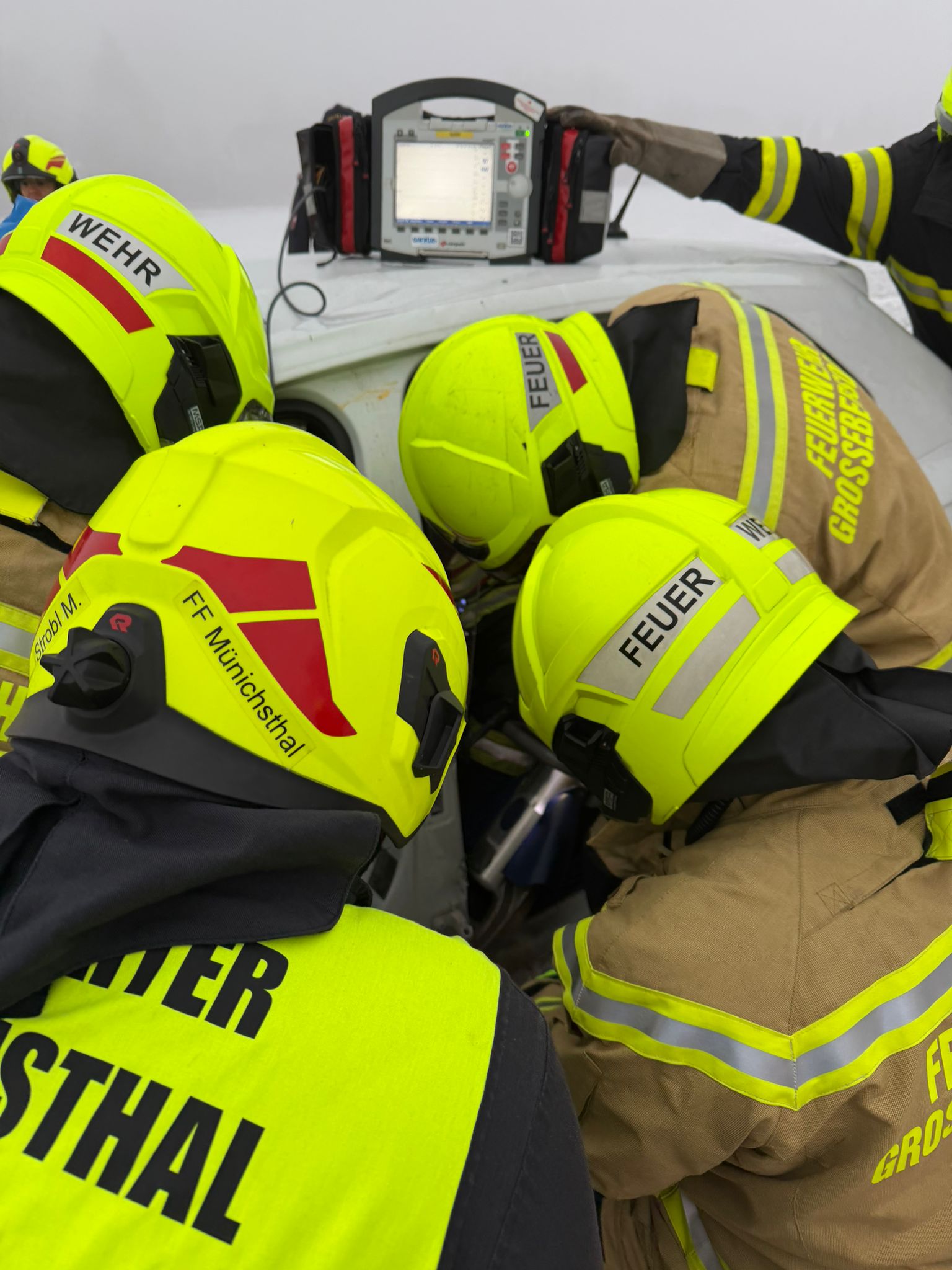 Unverzüglich wurde mit der Betreuung der Verletzten begonnen. In Abstimmung mit dem Rettungsdienst und aufgrund des Verdachts auf eine Wirbelsäulenverletzung wurde eine schonende Menschenrettung beschlossen. Gemeinsam mit der FF Münichsthal und der FF Wolkersdorf wurde eine Rettungsöffnung geschaffen und die verletzte Person behutsam aus dem Fahrzeug gerettet.