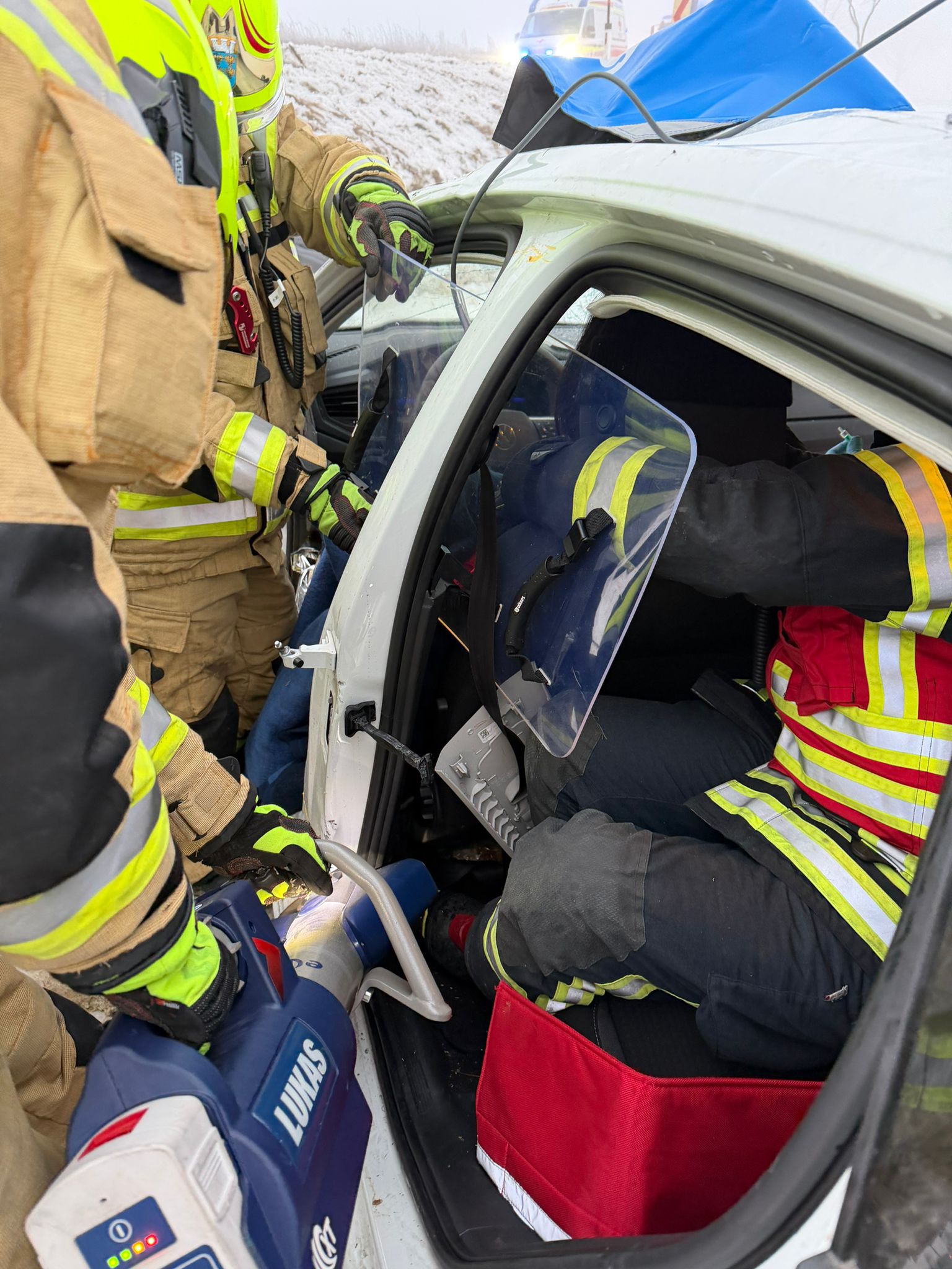 Am 16.01.2026 um 07:28 Uhr wurden wir zu einem Verkehrsunfall mit Menschenrettung alarmiert. In kürzester Zeit rückten KDO 1, TANK 1 sowie das Rüstfahrzeug Großebersdorf zur Einsatzstelle aus.